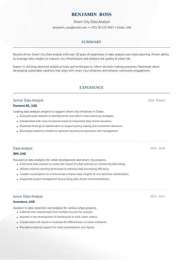 Resume Examples for Smart City Data Analysts