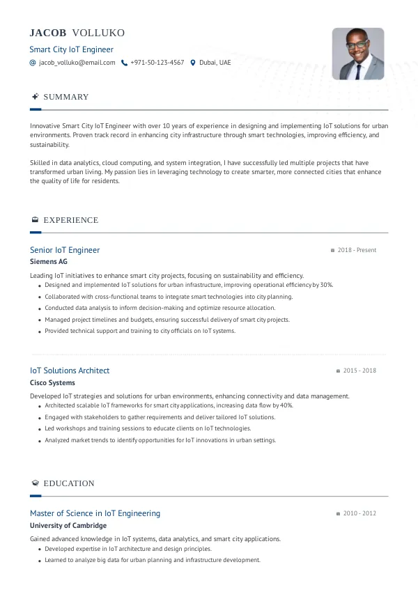 Resume Examples for Smart City IoT Engineers
