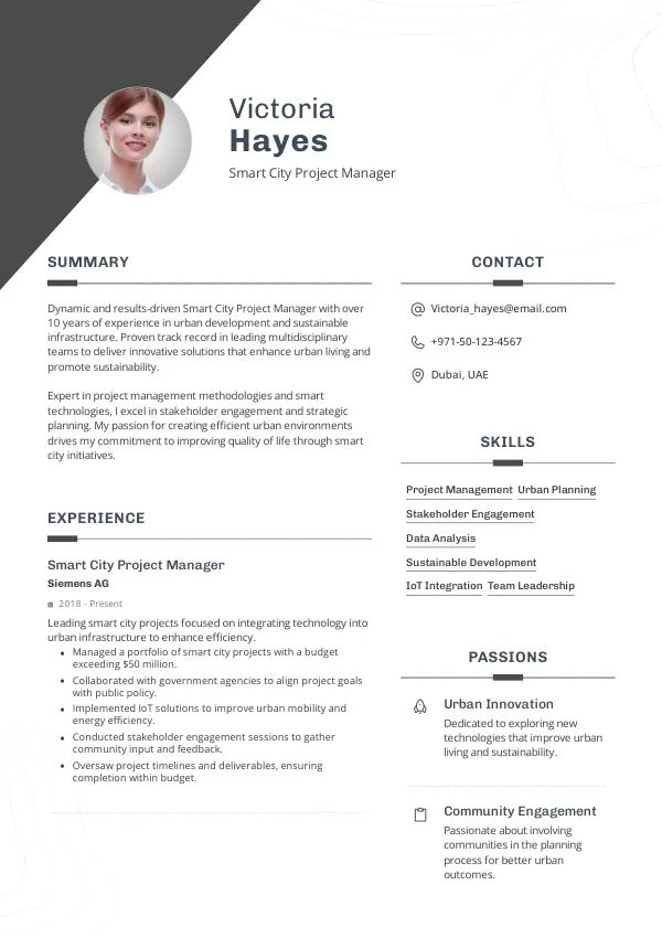 Resume Examples for Smart City Project Managers