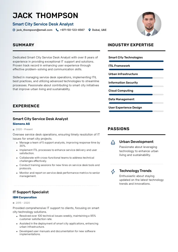 As the role of Smart City Service Desk Analyst evolves, aligning your resume with industry expectations through TrueCV will be essential for success in this dynamic field.