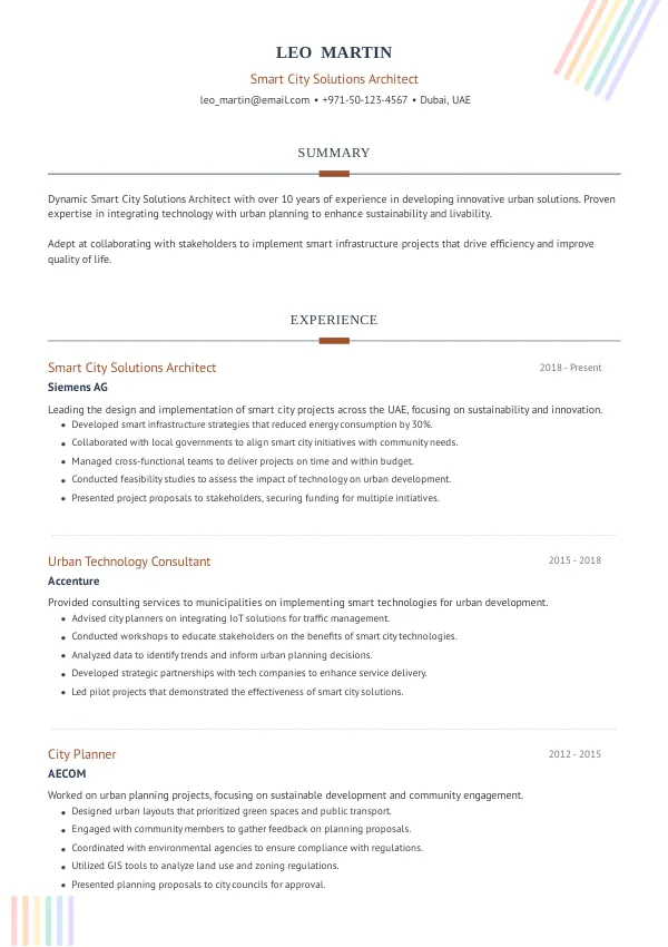 - Develop a strategic application approach that highlights your contributions to smart city projects.