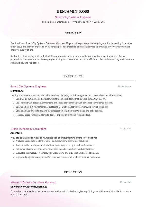 Resume Examples for Smart City Systems Engineers