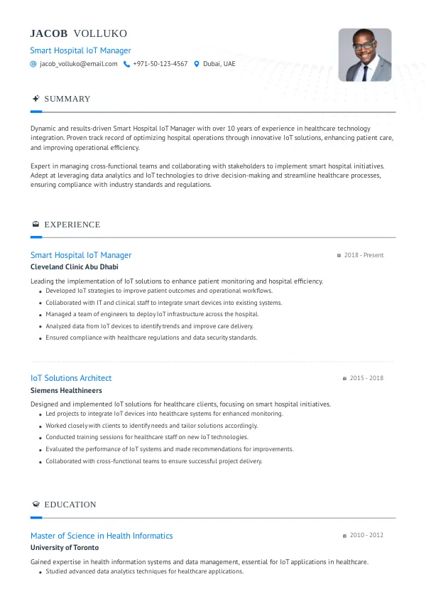 Resume Examples for Smart Hospital IoT Managers