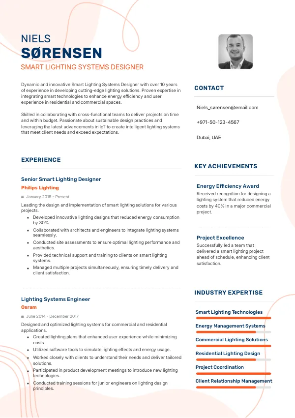 The UAE's focus on smart city development will create stable job opportunities for Smart Lighting Systems Designers. As the market grows, employers will seek to retain talent, leading to enhanced job security. A TrueCV-optimized resume will position you favorably for visa sponsorships, as employers will prefer candidates who meet their evolving needs.