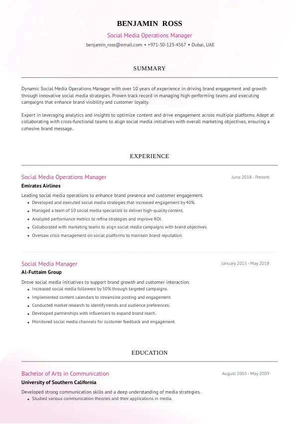 - Achievement: Successfully increased brand engagement by 40% through innovative social media campaigns.