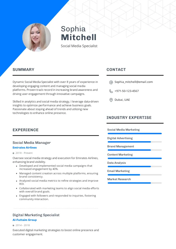 Leading companies in the UAE, such as Emirates Airlines, Etisalat, and Majid Al Futtaim, are actively seeking Social Media Specialists in 2026. Their focus on digital transformation and engagement strategies supports the perception of stability and seniority, aligning with Golden Visa considerations.