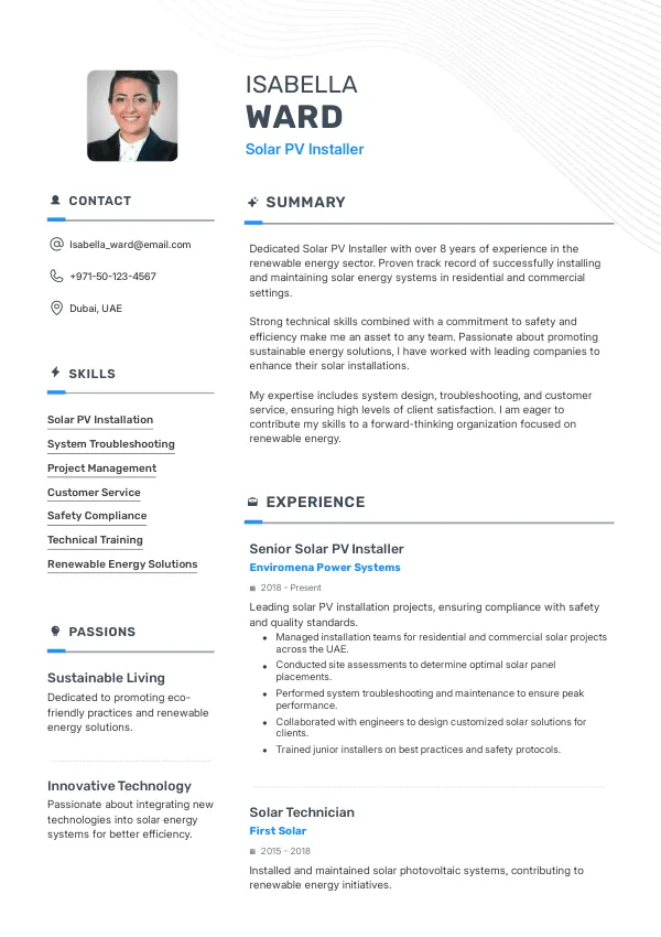 As the demand for Solar PV Installers grows in the UAE, ensure your resume reflects the latest industry trends and expectations with TrueCV.