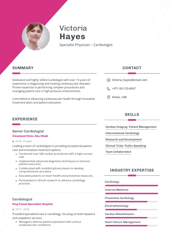As the demand for Cardiologists grows in 2026, aligning your resume with industry expectations and showcasing your contributions will be essential for long-term residency and Golden Visa considerations. Start optimizing your resume with TrueCV today.