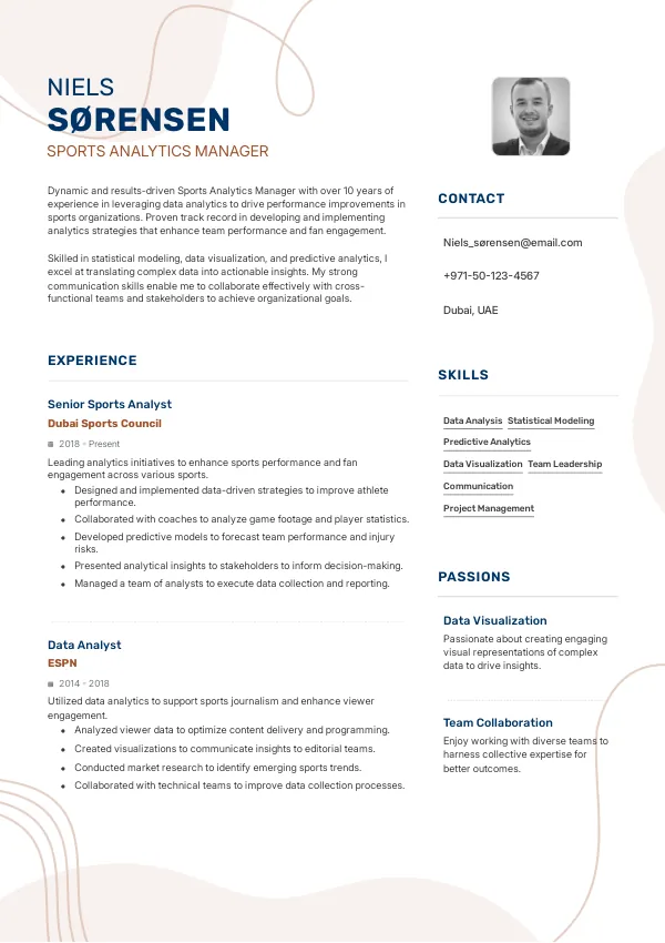 Resume Examples for Sports Analytics Managers
