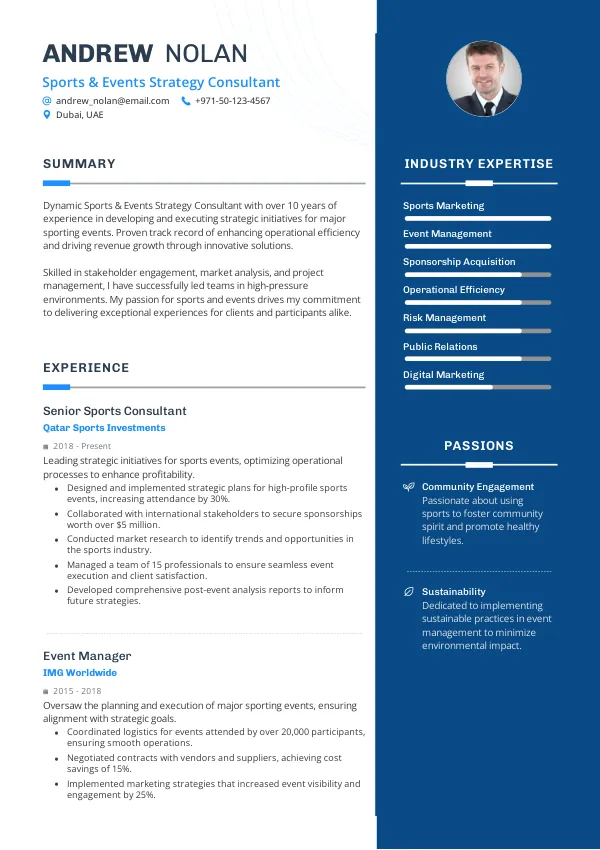 As the role of Sports & Events Strategy Consultant evolves, ensure your resume reflects the latest industry trends and expectations with TrueCV.