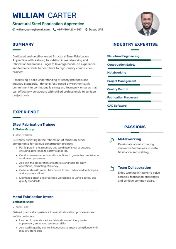 In 2026, the role of a Structural Steel Fabrication Apprentice will evolve significantly as the construction industry in the UAE embraces advanced automation and digital fabrication technologies. The integration of Building Information Modeling (BIM) and augmented reality (AR) will redefine how apprentices learn and apply their skills on-site. A TrueCV-optimized resume will help candidates highlight their adaptability to these new tools and technologies, making them more appealing to employers.