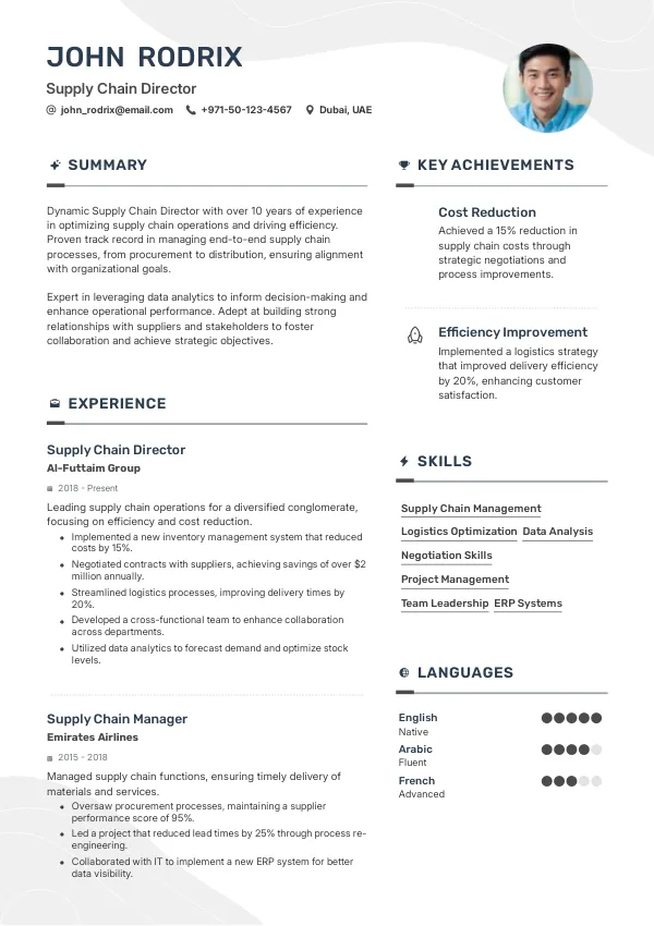 - Achievement: Successfully implemented an AI-driven supply chain solution that reduced costs by 20%, showcasing your impact and aligning with long-term residency and Golden Visa considerations.