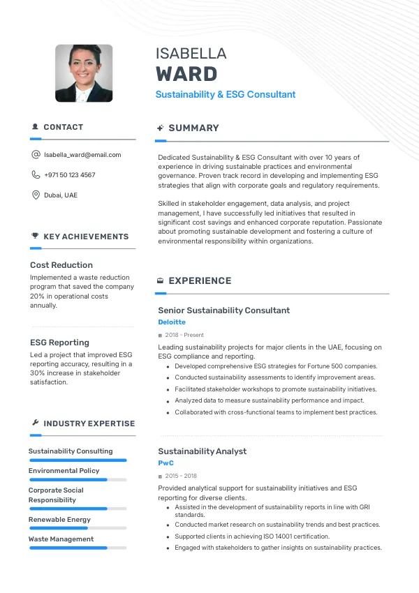 Resume Examples for Sustainability & ESG Consultants