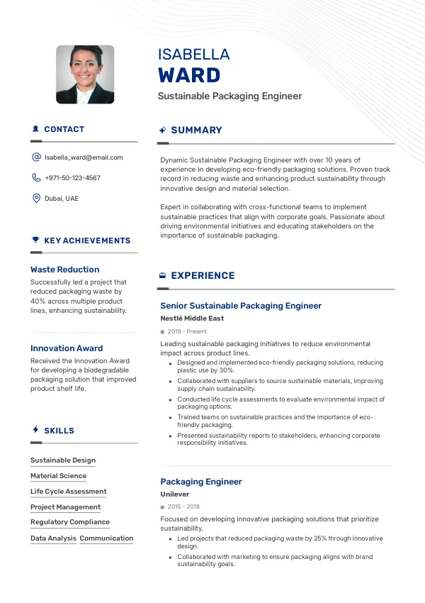 Resume Examples for Sustainable Packaging Engineers