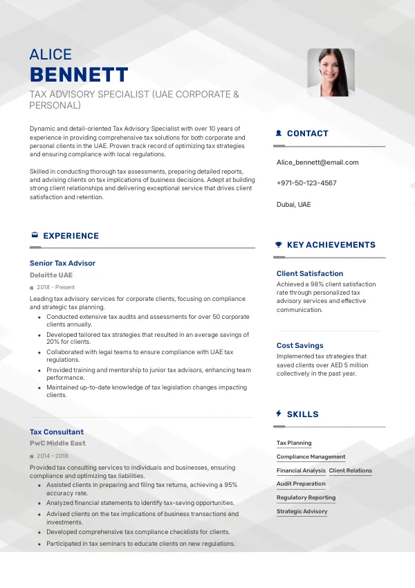 Create My Tax Advisory Specialist (UAE Corporate & Personal) ResumeNew Qualifications and Certifications for Tax Advisory Specialists