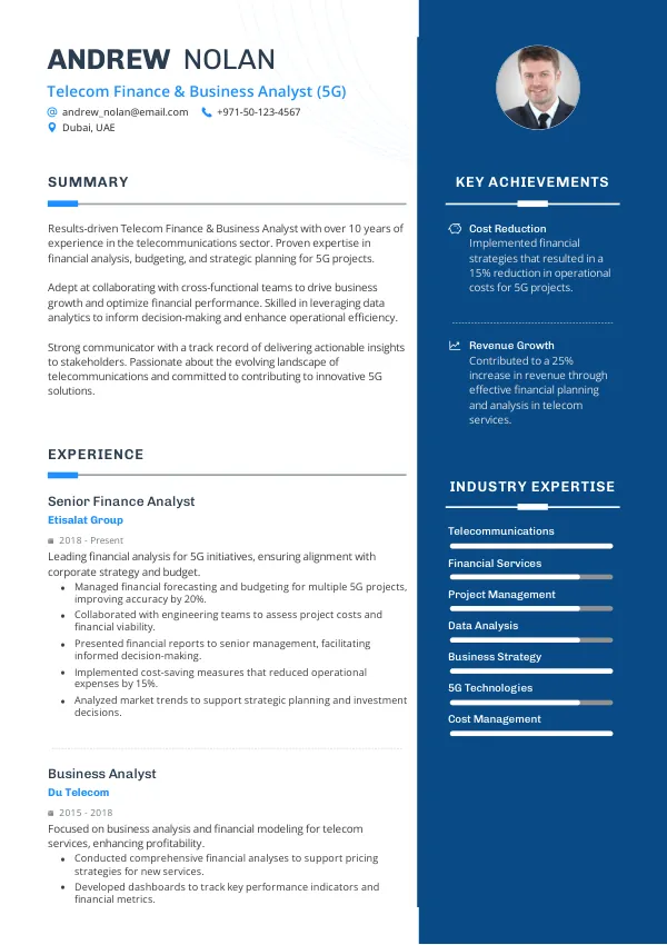 Build My Telecom Finance & Business Analyst (5G) ResumeEvolving Responsibilities of Telecom Finance & Business Analysts