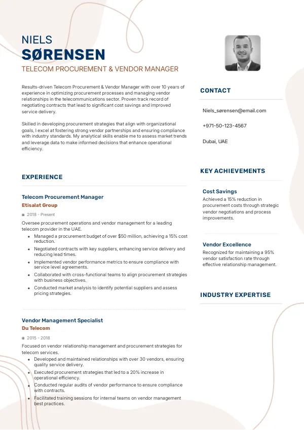 Resume Examples for Telecom Procurement & Vendor Managers