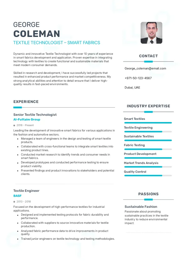 Build My Textile Technologist – Smart Fabrics ResumeEvolving Responsibilities of Textile Technologists