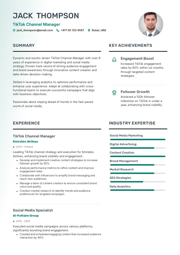 The demand for TikTok Channel Managers in the UAE is expected to lead to greater career stability, with many companies looking to fill these roles long-term. As the market expands, visa opportunities for skilled professionals will also increase, making this an attractive career path. A well-crafted TrueCV can enhance a candidate's employability in this competitive landscape.