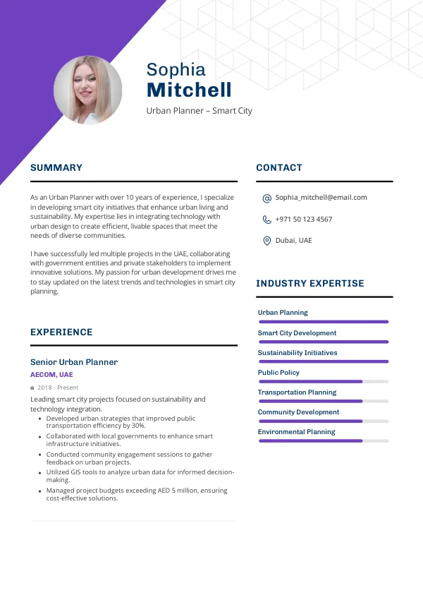 The demand for Urban Planners in 2026 is driven by the UAE's commitment to smart city initiatives, supported by significant investments in technology and infrastructure. The adoption of standards like ISO 37120 for sustainable cities will further elevate the role. As cities strive to become more efficient and livable, employers are seeking planners who can implement these frameworks effectively. A TrueCV-aligned resume can showcase relevant experience and knowledge of these emerging standards.