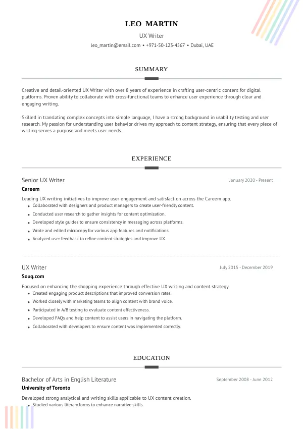 - Certifications from recognized institutions in UX writing will be highly regarded.