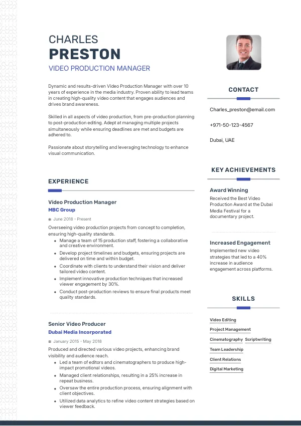 In 2026, the media and entertainment sector is projected to continue its growth trajectory, ensuring high employability for Video Production Managers. This stability is a key factor in supporting long-term residency and Golden Visa considerations, as employers seek experienced professionals to drive their projects forward.