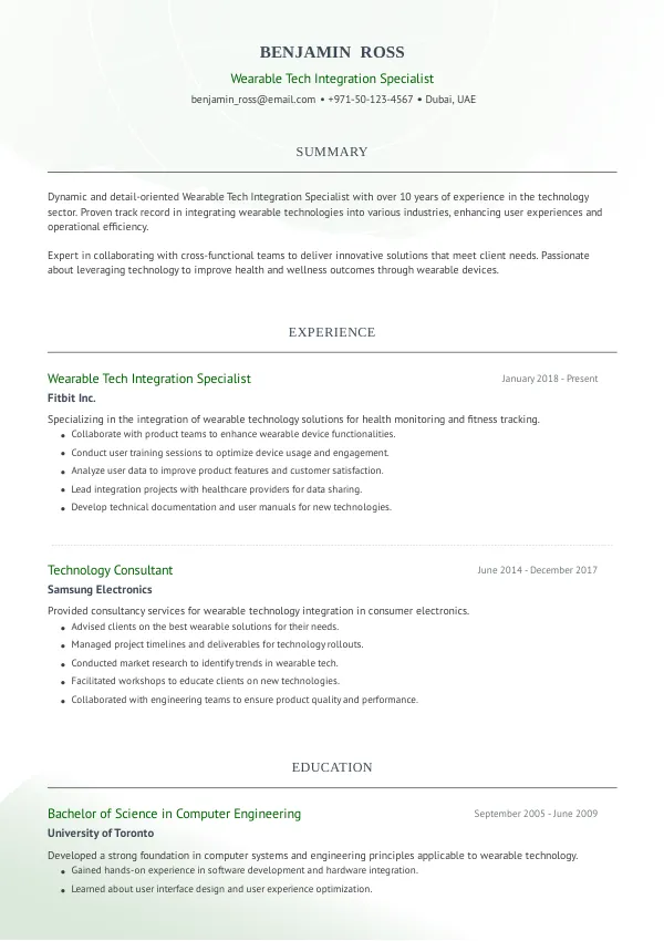 The UAE's focus on becoming a global hub for digital health will create a stable job market for Wearable Tech Integration Specialists. Companies will seek to retain top talent, leading to increased job security and opportunities for career advancement. Candidates should ensure their resumes reflect their long-term career goals, which can be effectively communicated through TrueCV.